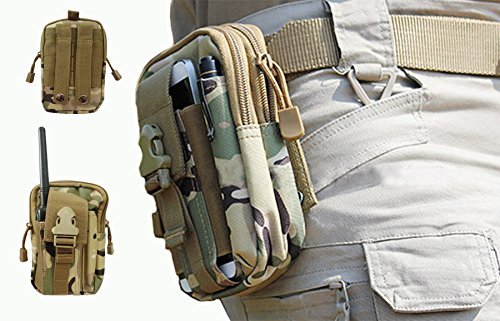 If you’ve even been fed up of putting countless small things in your pockets every day, then this is the product for you. With its numerous spacious pockets and compartments, you’ll find space for all the little things like pens, lighters, keys, phones, small power banks, chargers etc that occupy and clutter bags and wallets on a daily basis.    Built with the MOLLE ( Modular Lightweight Load-carrying Equipment) concept in mind, it is designed to be extra spacious and accommodating of heavy and light products.    The highest quality fabric zips and clips have been used to manufacture this high-quality pouch.It is water resistant (not water proof, meaning you can use it in the rain but not submerge it in water completely) It can be worn on your waist as a waist pouch or attached to a backpack as an extension. It has two zippered compartments and one buckle closure compartment.    You can store up to THREE phones of 5.5″ collectively together in this pouch- two in the zip compartments and one in the outer buckle clasp pocket     If you travel a lot or are planning on traveling soon, this basic travel accessory is a must for you. Keep your valuables like phones (up to 5.5′), passports, tickets etc handy and enjoy your trip without worrying and thinking about the safety of important documents. You can also easily store small digital cameras, mini torch, medicines, spectacles and sunglasses case etc.