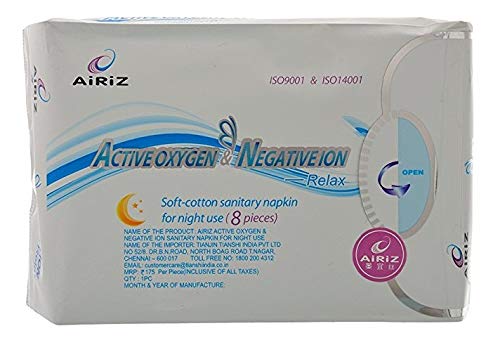AiRiZ ACTIVE OXYGEN & NEGATIVE ION RELAX SOFT COTTON SANITARY NAPKIN FOR Night USE -(8 Pads in Pack) Sanitary Napkin