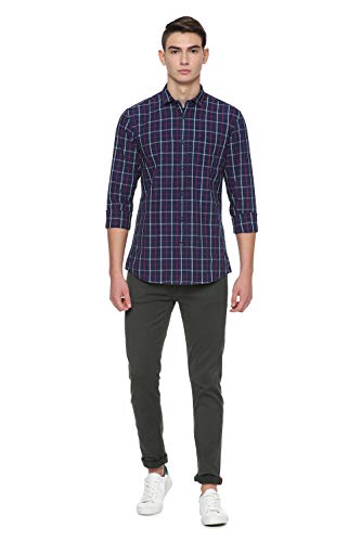 Look effortlessly stylish when you don this Navy check shirt, tailored for a regular fit, from Solly jeans co by Allen Solly.