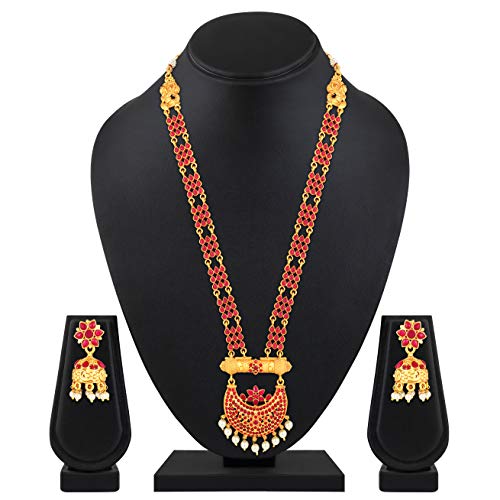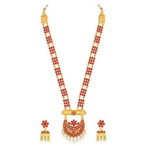 Asmitta Red Kundan Pearl Studded Long Necklace Set for Women₹ 1,999.00