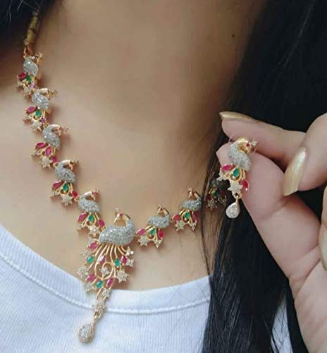 Blulune Brass and American Diamond Jewellery Set With Earrings for Women & Girls (Gold)₹ 1,999.00