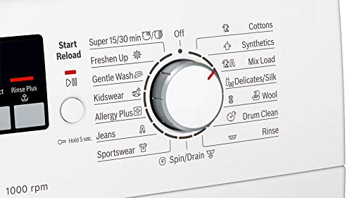 Programmes – Speed Programs:Cottons, Mix/Daily Wash, Synthetics, Delicates/ Silk – Other Programs: Super 15’/30′, Kidswear, AllergyPlus, Wool, Drum Clean, Rinse, Spin/Drain, Jeans, Sportswear