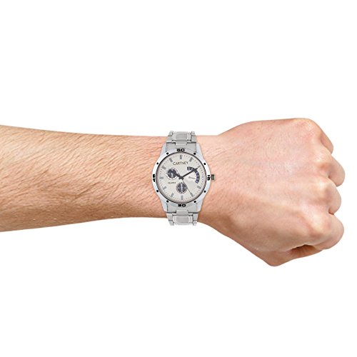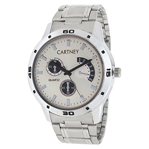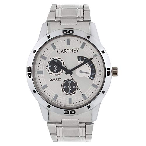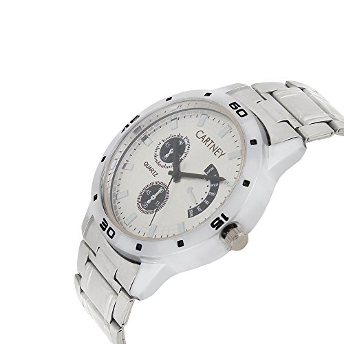 Stay fashionable with quartz watch from CARTNEY. This analogue watch has round white dial. The silver colored straps in the watch are made of stainless steel. This watch has manufacturer Warranty.