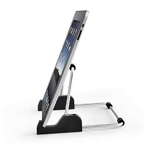 Features: Compact Portable Adjustable PC Tablet Stand Mount. Compatible for Tablet 7-10 inch. Keeps your device at different comfortable reading or viewing angles in either landscape or portrait view. Compact and foldable design for easy storage and fits nicely in your briefcase or luggage. Sturdy and durable. Small, lightweight and foldable, stand. Toss it in your gear bag or backpack, you can take it with you wherever you take your device. Position your tablet in multiple angles in landscape or portrait view for ultimate viewing pleasure. Stand can be neatly folded up and placed in bag or or even a pocket. Due to the stands adverse design you can easily fit your tablet device while cased on stand this includes leather flip cases and hard cases. Soft foamed plates keep your tablet gripped to the device without possible scratches or wear and tear to the devices casing.