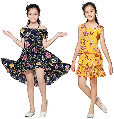 CUTIEKINS Regular Fit Poly Crepe Printed Multicolor Dress for Girls – Combo Pack of 2₹ 799.00