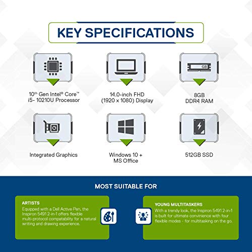 Dell Inspiron 5491 Laptop (i5-10210U, 8GB DDR4, 512GB SSD). Intel Core i5-10210U, 8GB DDR4, 512GB SSD, INTEL UHD GRAPHICS.