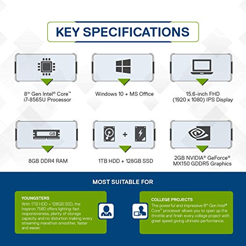 Dell Inspiron 7580 15.6-inch FHD Laptop (Core i7 8th Gen/8GB/1TB + 128GB SSD/Windows 10 + MS Office/2GB Graphics/Silver)₹ 91,076.00