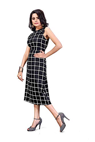 This beautifully handcrafted Western Dress by DIEGO made for you with modern design, Look stunningly beautiful in this lovely dress. FEBRIC -POLY COTTON CREPE, FULL INNER AVAILABLE, Color : BLACK AND WHITE, BELOW KNEE LENGTH (39-40 INCH), BODY CONE DESIGN
