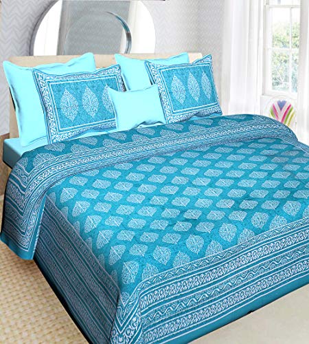 Ealth Kart 100% Cotton Comfort 180 TC Rajasthani Jaipuri Traditional King Size 1 Double Bedsheet with 2 Pillow Covers – Green