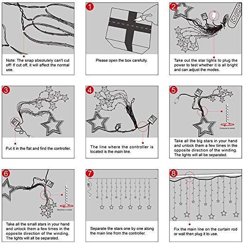 Star Curtain lights can be hung on walls, windows, doors, floors, ceilings, grasses, Christmas trees etc.