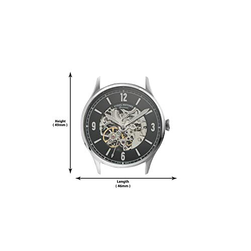 Gorgeous inside and out, this new automatic Forrester series watch from the house of Fossil reveals it’s inner workings when worn on your wrist. The top-of-the-hour automatic watch takes its cues from vintage designs. Included with our up-to-the-minute innovation? A refined silver stainless steel case houses a see-through skeleton black satin dial, automatic movement and a silver-tone stainless steel bracelet which holds the whole piece together.