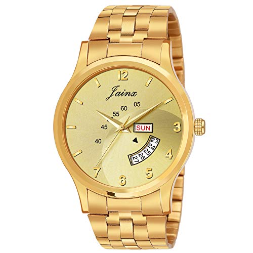 JAINX Analogue Men’s Watch (Gold Dial Golden Colored Strap)