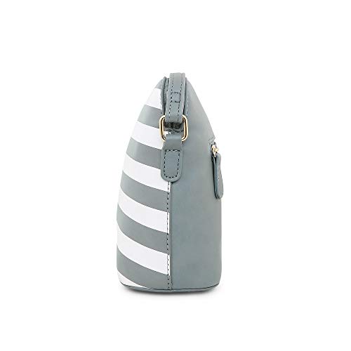 Striped dome satchel with a smooth hand feel spacious compartment and multiple utility pockets adjustable sling belt for convenience.