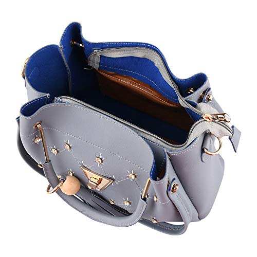 Le Platinum PU Leather Latest Trendy Fashion Ladies Handbag With Sling Bag & Clutch Combo Purse Grey (set of 3)