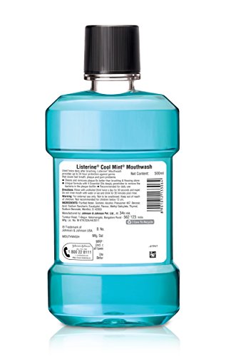 Listerine Cool Mint Mouthwash, in the net quantity of 500ml. It is specifically designed to reach places that a toothbrush cannot. It helps remove all the food particles, impurities and other debris even from the narrowest of gaps in between the teeth, thus eliminating germs and protecting the teeth from cavities and decay.