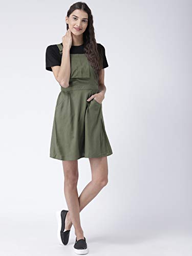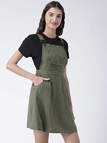Magzayra Women Olive Green Solid Pinafore Dress