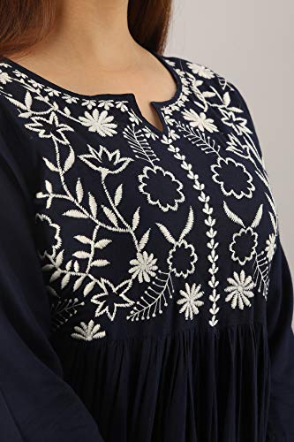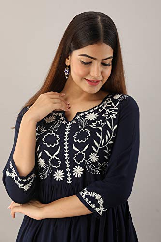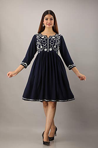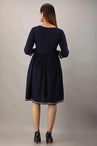 MAHASETH FASHION Women’s Rayon Embroidered 3/4 Sleeve Boat Neck A-Line Blue Dress₹ 525.00