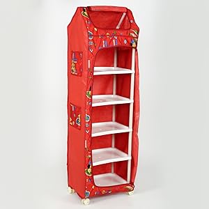 NHR Multipurpose Foldable/Plastic Baby almirah, Kids Wardrobe, Cloth Organizer, Folding Cupboard, Toy Box (6 Shelf, Red)₹ 1,800.00