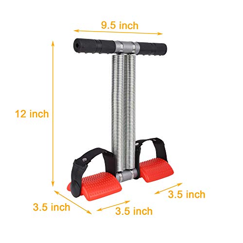 Tummy Trimmer Double Spring Contoured feet pedals Steel 2 spring pull up bar Portable and light weight, can be used anywhere anytime. Flattens tummy in just a few days Firms chests and arms Tightens hips and thighs. Do Exercise Anytime Anywhere – Workout in home, office or even outdoors while watching TV, chatting with friends. 5. Shape Your Body Effectively – Workouts for Arms, Legs and Back, and can do seated exercises. Improve stretching and flexibility. Way to Use Tummy Exercise Sit on a yoga mat with your legs and footing flat on the fixed footrest, holding the handle to do sit-ups. It can consume twice calories than usual sit-ups. Arm & Waist Exercise Sit on a yoga mat with your legs bent and footing flat on the fixed footrest. Holding the handle and pull up the spring with your hand. Leg Exercise Lying on the yoga mat, holding on the handle and footing on the footrest. Legs bent in 90 angle and force forward. Note: Recommendation 15 times each. It can effectively exercise.