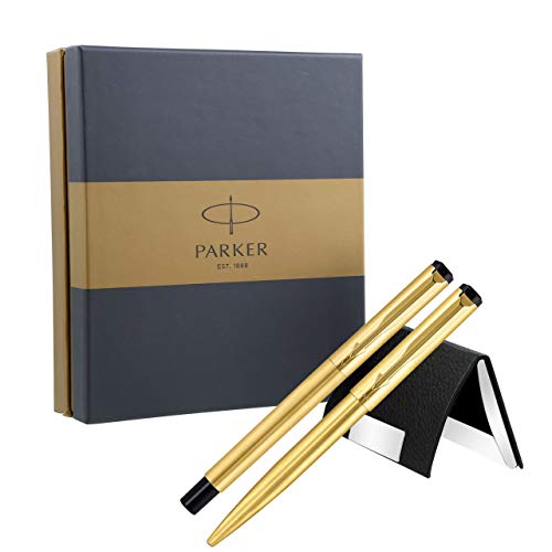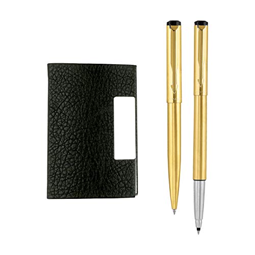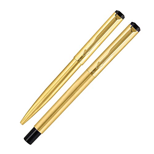 Parker Vector Gold Trim Roller Ball Pen and Ball Pen Luxury Gift Set, Blue Ink