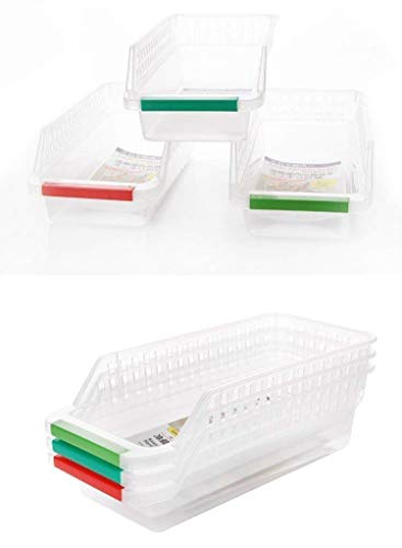 [ PACKAGE INCLUDE ] – 4x. Size : 29L x 12.5B x 8.5H cm (Colour Will Be Send As Per Available) [ TRANSPARENT ] – The transparent design makes the search process easier as you can find the required product without a hassle. [ HIGH QUALITY MATERIAL ] – Made of high quality solid plastic material(PP), BPA free, freezer & dishwasher safe, these freezer organizer bins set are great for storing fruits, veggies/vegetables, meats, cheeses, meals, frozen food etc. [ VERSATILE USE ] – Storage Basket is for everyday use, Ideal to maximize storage space in your fridge, freezer, pantry shelves, kitchen cabinets, closets etc. [ USER-FRIENDLY ] – The built-in handles make for easy conveyance and handling of the drawers while putting inside or taking out of the refrigerator; its stackable design takes up minimal storage space.