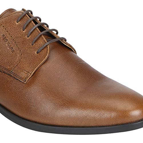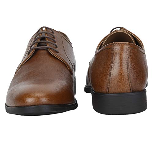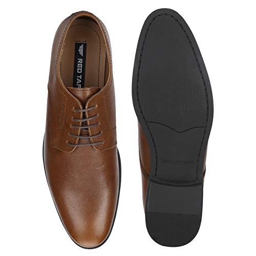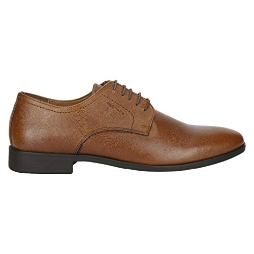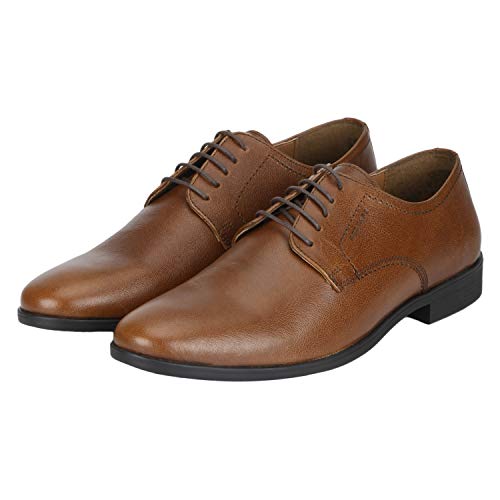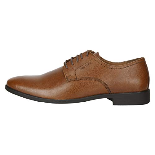 Impressive for its brilliant craftsmanship, superior comfort and classic design this pair of Tan shoes from Red Tape is a smart formal staple. With its leather upper and PVC (polyvinyl chloride) sole promising excellent support, enhanced soft feel and excellent grip on all surfaces, this pair of shoes also has grain texture, slim lacing on the front and pointed toe that give it a sophisticated look. Done with embossed branding on the side that define its signature identity, this pair of shoes will go well with any shirt and trousers.