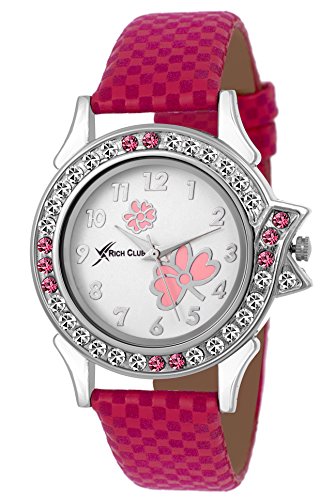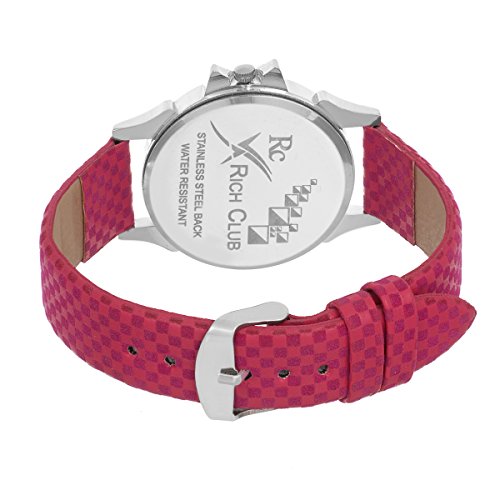 Stay fashionable with quartz watch from Rich Club. This analogue watch has round white dial and the watch has pink colored straps. This watch has 1 year manufacturer warranty.