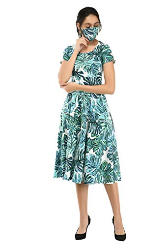 RUDRAKRITI Women’s White Crepe Printed Knee Length Dress (Free Mask)₹ 399.00
