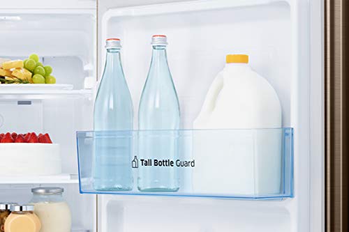 This Samsung refrigerator comes with High energy efficiency certified by BEE, so it saves money by using less electricity without sacrificing performance. It’s BEE 5 star rating makes it one of the most energy efficient refrigerators available. Digital Inverter Technology automatically adjusts the compressor speed in response to cooling demand across 7 levels. It uses less energy, minimizes noise and reduces wear and tear for longer-lasting performance. Has toughened glass shelves that are designed and tested to hold a weight of up to 150kg safely. So even large vegetables, like marrows, or dishes prepared in heavy pots and pans can be kept cool and fresh.