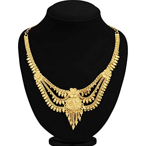 Traditional 24 Carat Gold Plated Choker Necklace Set for Women will complement any Indian attire. Women Love Jewelry as it not only enhances their beauty, but also gives them the social confidence. Make your moment memorable with this range. This jewel set features a unique one of a kind traditional embellish with antic finish. Earrings are very easy to use being lightweight and has a design which makes it very comfortable.