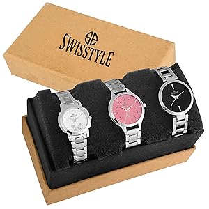 Swisstyle brings to you this combo of watches which is suitable for women The watches have an analog display type and are available in a set of attractive colours. The three watches have a stylish round dial giving the timepieces a contemporary look. A watch is one of the essential accessories which is a part of your daily wear and is an extension of your personality. Swisstyle combines precision and finesse together to provide you a timepiece which you can flaunt in style.