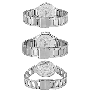 All the watches in the combo feature an analog display type with round dials. They have the brand name beautifully inscribed on them adding to the charm of the watches. The hour, the minute and the second hands are defined giving it a classy look.