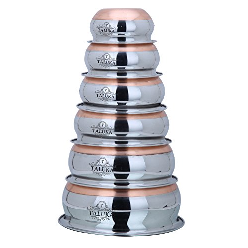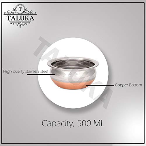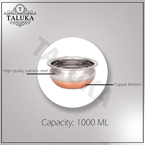 Taluka copper bottom handi product description: package contents 6 piece stainless steel copper bottom handi of capacity 500 ml 800 ml and 1000 ml 1300 ml 2 liter , 3 liter