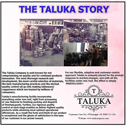 Taluka handi cookware 6 pcs. Set – “Copper bottom – export quality ” prabhu chetty – premium quality is deep vessel height is useful to cook all type of food. Easy to clean and wash, they have very exotic silver shining. Highly durable and made of fine quality stainless steel. Uses:- used for preparing tea, coffee, boiling milk & cooking more such liquid and all type of product. Used for cooking more food compare to frying pan due to its deep vessel height. Compaq size makes it easy to store in kitchen cupboards. When not in used smaller container can be stacked inside bigger container saving lot of storage space. This handi / chetty cook and serve ware is stylish and beautiful to look at. It is durable and made of high quality stainless steel material. The handi which can be used for storing , cooking, mixing or serving food items. This set is made from high quality stainless steel making it exclusive and durable. This handi set has been beautifully designed to add grace to your dining experience. It is strong in construction and will not bend or have dents during normal use. Stainless steel is hygienic to use and easy to clean as compared to other materials. All the utensils are of mirror finish and give an elegant look. Used for preparing /cooking food or stylishly serving food. The copper bottom of this cookware makes it efficient for cooking and saves fuel. Features: cook faster & save fuel,copper bottom cookware, high-quality stainless steel, hard & durable, easy to clean and wash, exotic silver shining, cooking and storing food, store fresh cuts and curd, store bakery products, serve food and puddings, store knead dough, durable as a daily serve ware set, mix batters& salads. About the brand :- taluka in the business of stainless steel utensils, kitchenware & other kitchen products.