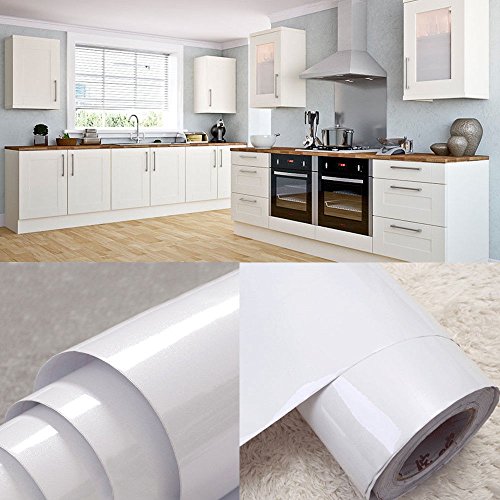 TOTAL HOME : White Color PVC Self Adhesive Waterproof Wardrobe Cupboard Decal Furniture Poster Wall Sticker Home Decor (24″ X 118″ INCH)