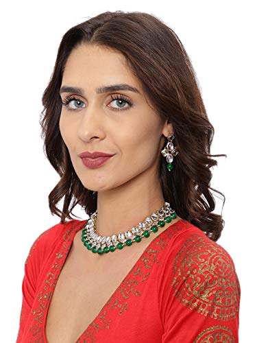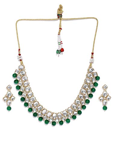Zaveri Pearls Gold Tone Kundan & Green Beads Traditional Necklace Set for Women-ZPFK8530₹ 1,663.00