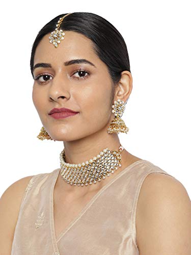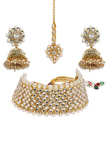 Zaveri Pearls Mesmerising Gold Tone Kundan and Pearls Choker Necklace Set for Women-ZPFK8880₹ 4,300.00