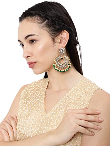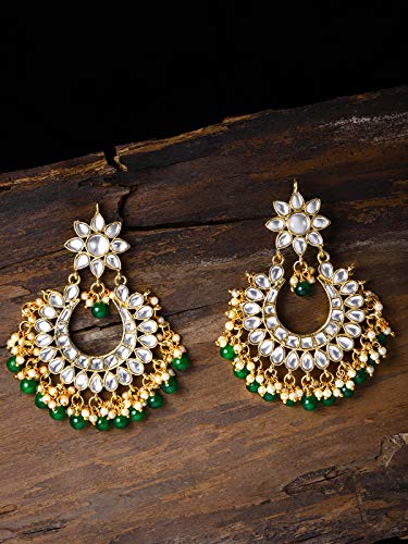 Zaveri Pearls Traditional Kundan & Green Beads Chandbali Earring For Women-ZPFK8669₹ 1,996.00