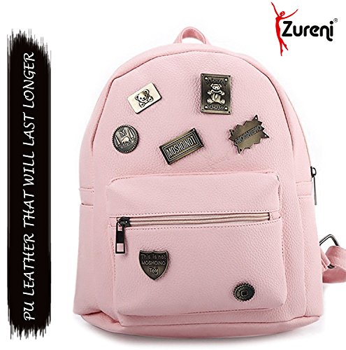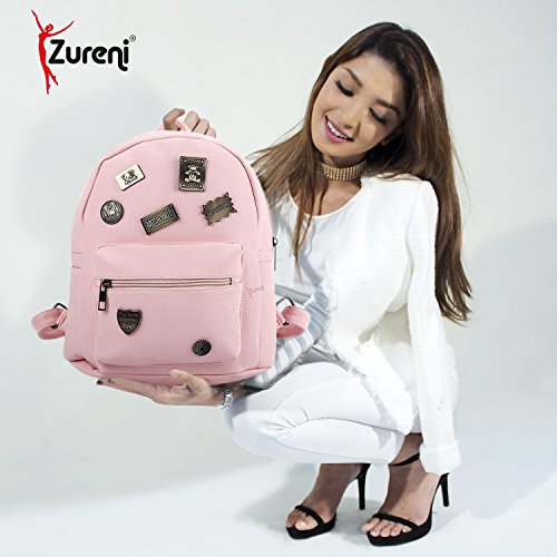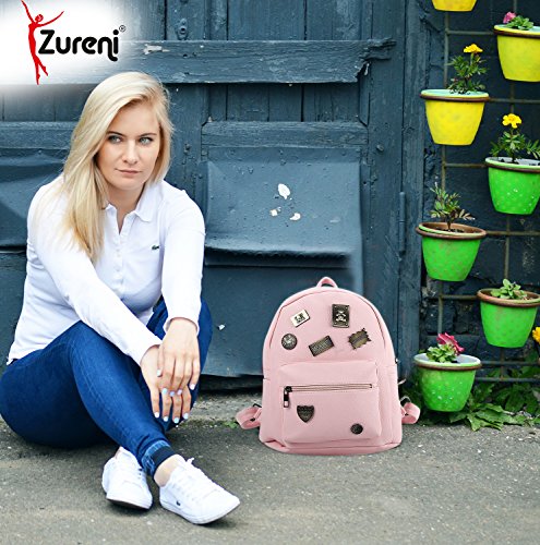 Zureni PU Leather Waterproof Casual Women Backpack for Teenage Girls and Ladies Stylish Travel Rucksack Versatile Shoulder Daypack Bag with Two Side Pockets